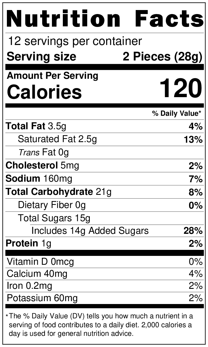 Manufactured in a facility that processes products containing Egg, Wheat, Peanut and Tree Nuts (Almonds, Pecans, Brazil Nuts) ingredients.